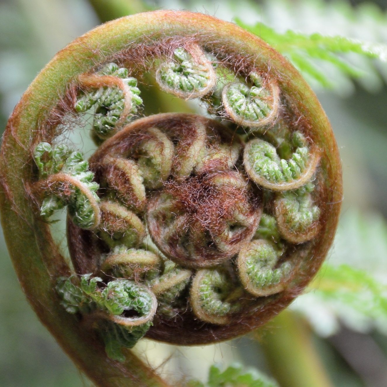Der zusammengerollte Jungfarn erinnert an die chrakteristische Haltung eines Embryos in Körper der Mutter.